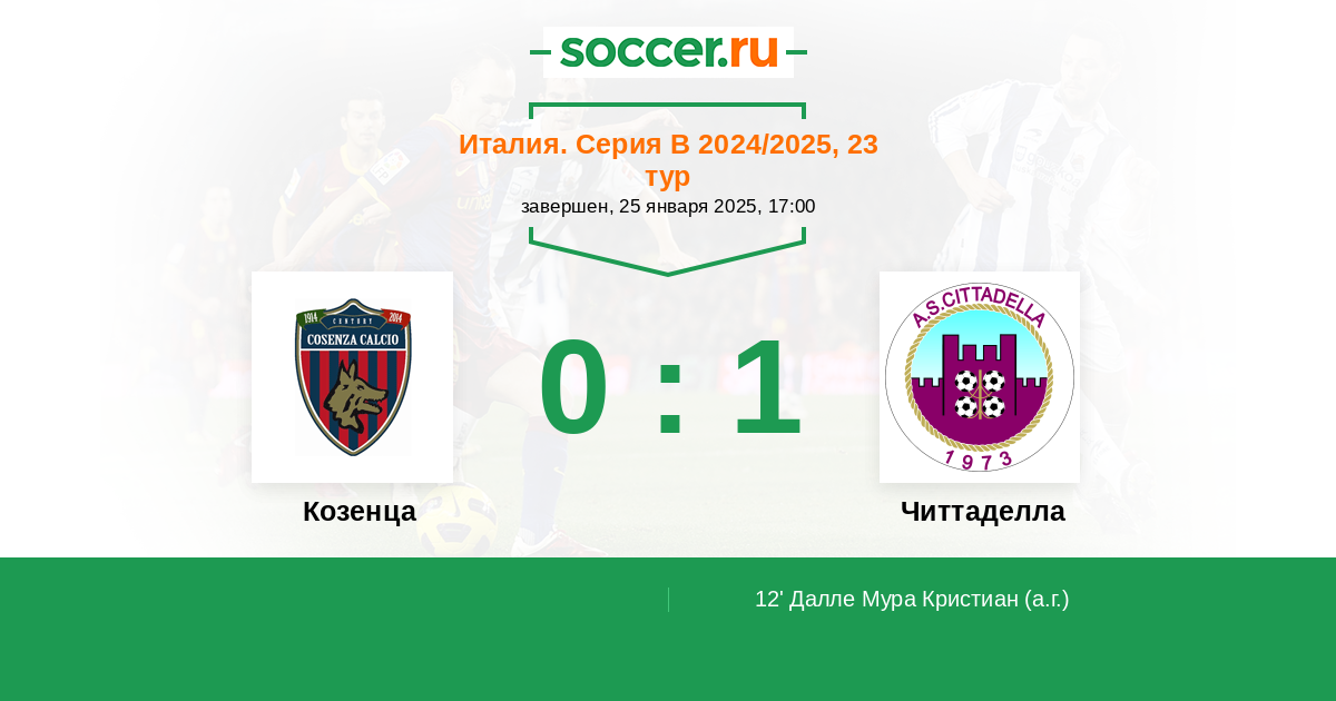 12' (0:1) Автогол Далле Мура Кристиан (15)