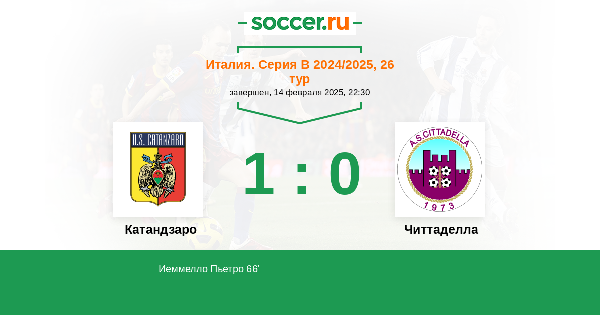 66' (1:0) Иеммелло Пьетро (9)