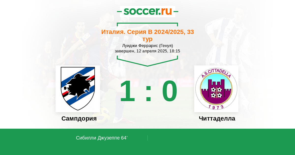 64' (1:0) Сибилли Джузеппе (33) (Бенедетти Леонардо (80))