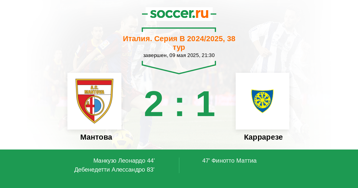 83' (2:1) Дебенедетти Алессандро (9) (Брагантини Давиде (30))