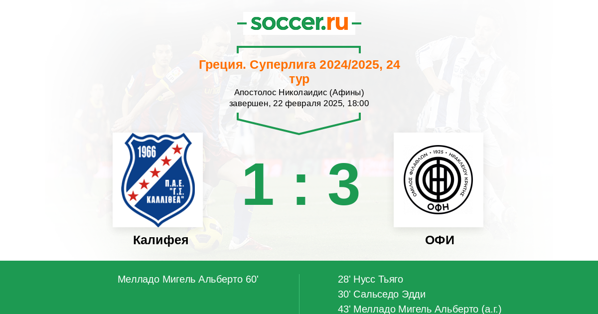 43' (0:3) Автогол Мелладо Мигель Альберто (29)