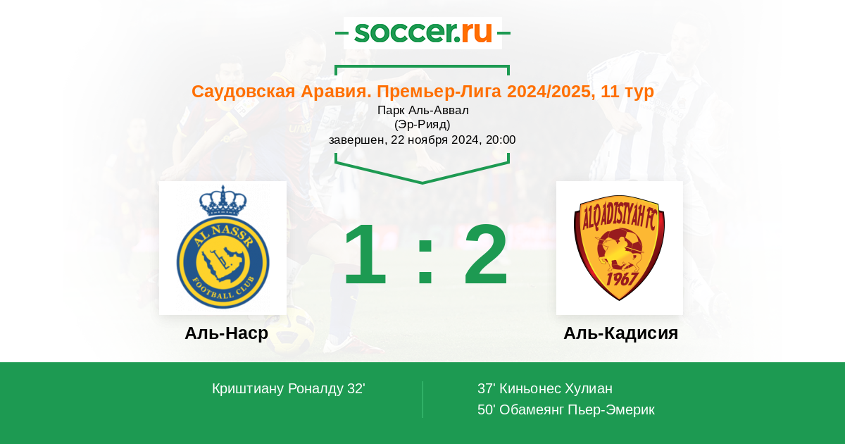 37' (1:1) Киньонес Хулиан (33) (Аль-Аммар Турки (7))