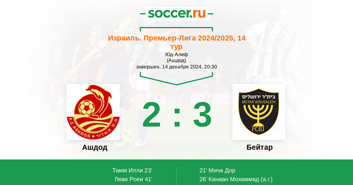 Запасные: 14 Йено Якоб (с 69'), 2 Засно Зохар (с 69'), 26 Кангани Аи (с 78'), 12 Дабуш Неорай (с 89'), 1 Карми Раз, 19 Мизрачи Лион, 6 Соро Исмаила, 16 Маркович Надав, 28 Израили Саги