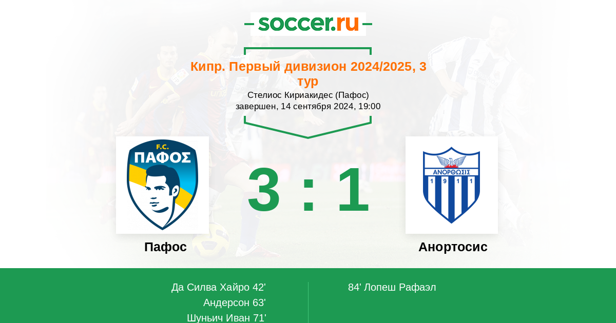 Запасные: 9 Леонардо Натель (с 57'), 33 Андерсон (с 57'), 25 Нэйм Мустафа (с 73'), 70 Элиа Мариос (с 73'), 8 Кина Домингуш (с 78'), 2 Пилеас Костас, 93 Михаэль Неофитос, 99 Пападудис Анастасиос, 16 Танлонго Матео, 32 Букамир Мехди, 34 Далл'Игна Диого, 45 да Силва Рафаэль
