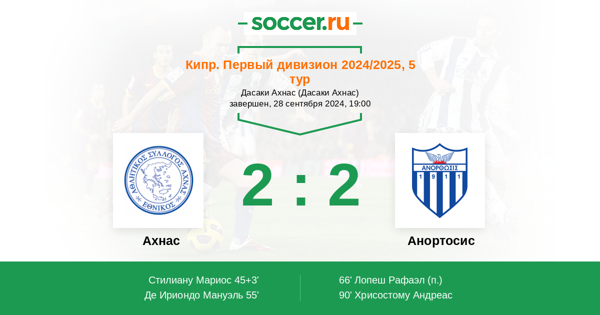 Запасные: 25 Саади Джалил (с 62'), 98 Брено (с 68'), 9 Собич Артур (с 90+4'), 80 Ангелопулос Гиоргос (с 90+4'), 1 Богатинов Мартин, 7 Элиа Константинос, 18 Дубов Никита, 19 Эрнандес Рубен, 20 Милинчану Николай, 23 Веницелос Константинос, 45 Папастиляну Михалис, 93 Барэ Йоан