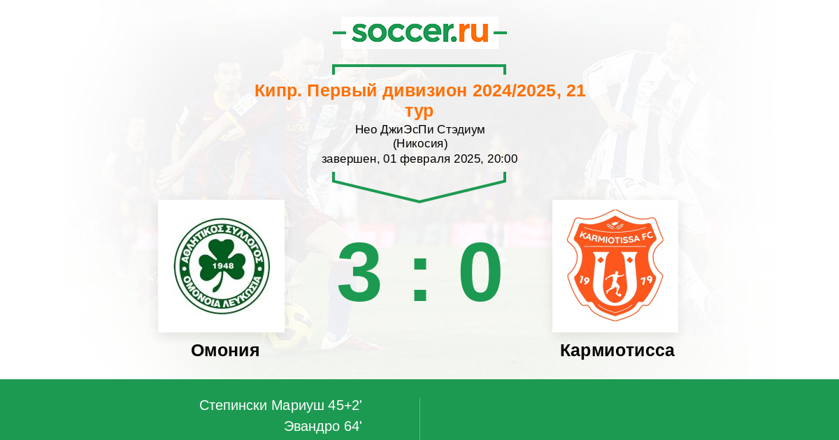 Запасные: 2 Дионку Альфа (с 62'), 11 Эвандро (с 62'), 99 Алиум Саиду (с 67'), 31 Иоаннис Кусулос (с 79'), 85 Неофиту Ангелос (с 79'), 3 Кицос Фотиос, 4 Хеландер Филип, 23 Узохо Фрэнсис, 33 Мусиаловски Матеуш, 48 Хаджиевангелу Андреас, 76 Харалампус Харалампос, 90 Безус Роман