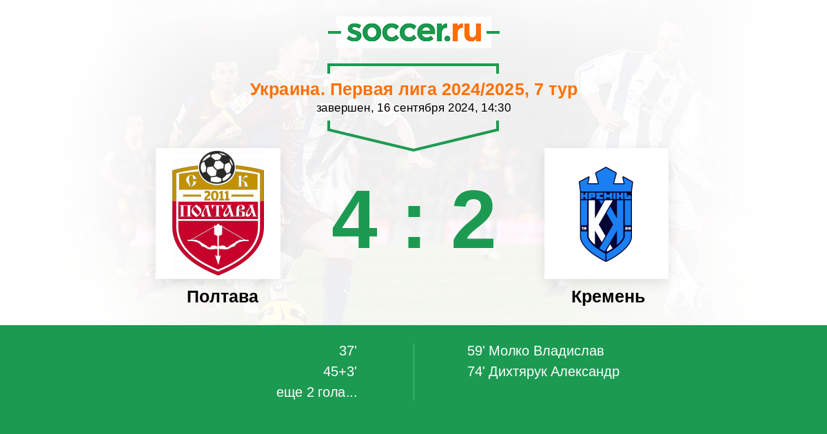 69' (3:1) Автогол Боровский Андрей