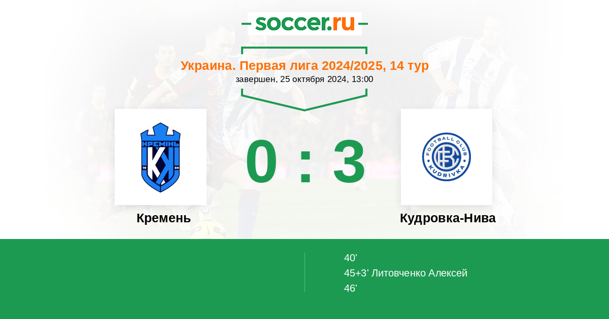 45+3' (0:2) Литовченко Алексей