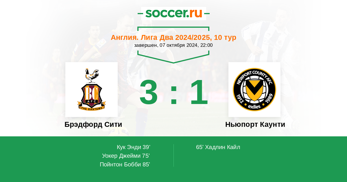 39' (1:0) Кук Энди (9) (Бенн Джей (27))