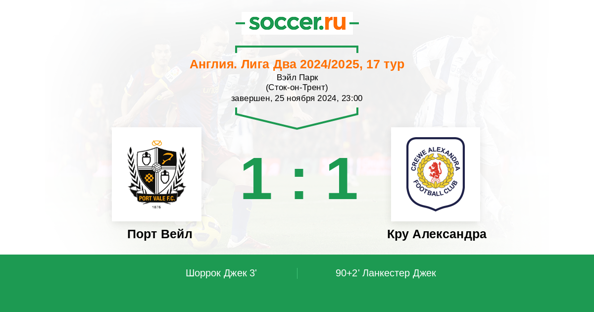 90+2' (1:1) Ланкестер Джек (14) (Конуэй Макс (25))