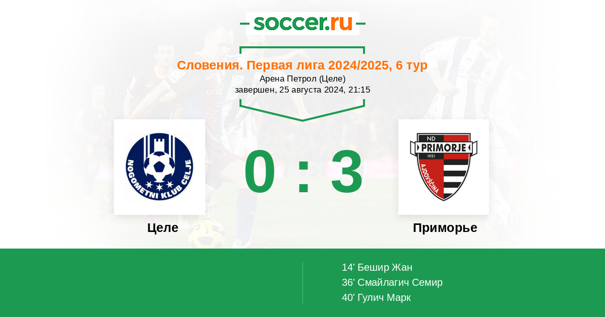 36' (0:2) Смайлагич Семир (14) (Жавник Матич (10))