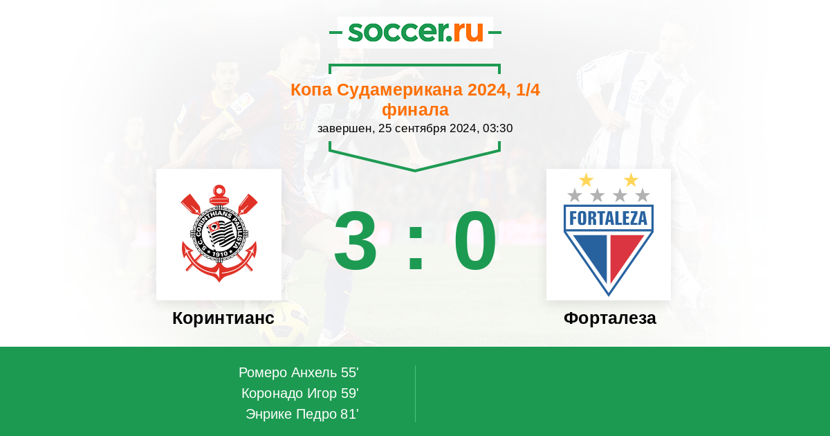 Запасные: 10 Гарро Родриго (с 65'), 7 Депай Мемфис (с 65'), 37 Райан (с 73'), 16 Энрике Педро (с 73'), 18 Ригон Шарлес (с 76'), 13 Густаво Энрике, 23 Фагнер, 17 Джоване, 20 Педро Рауль, 21 Матеус Биду, 25 Кака, 32 Матеус Донелли