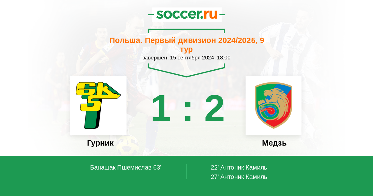 22' (0:1) Антоник Камиль (Подгурски Яцек)