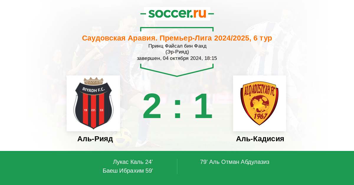 79' (2:1) Аль Отман Абдулазиз (66) (Аль-Аммар Турки (7))
