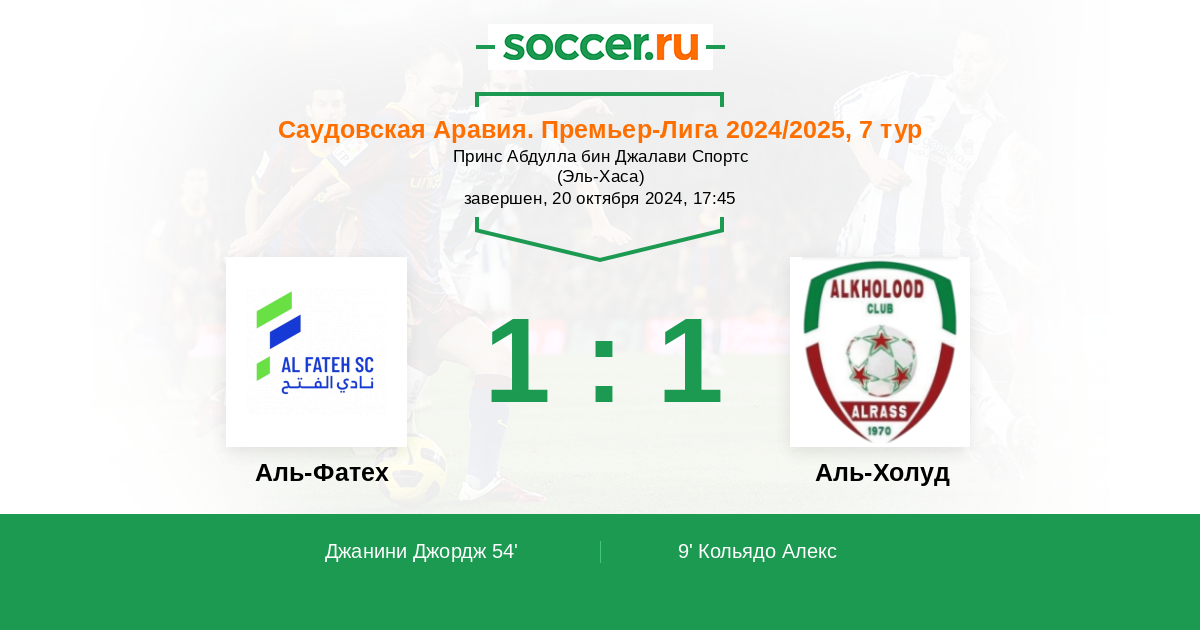 54' (1:1) Джанини Джордж (21) (Аль-Заид Сухайб (18))