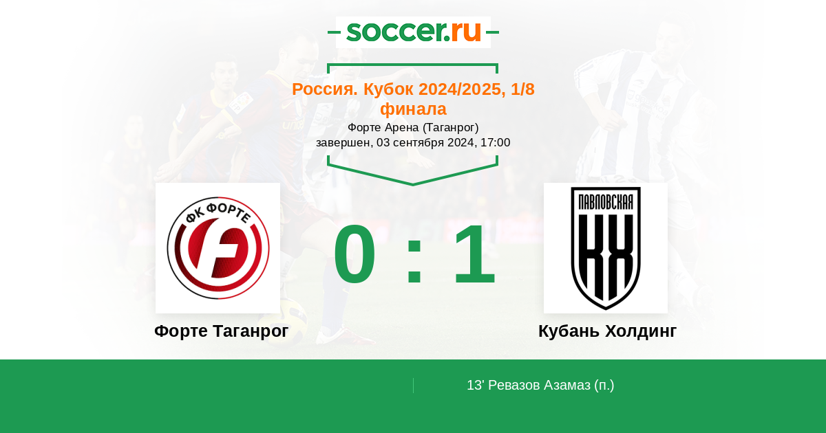 13' (0:1) Ревазов Азамаз