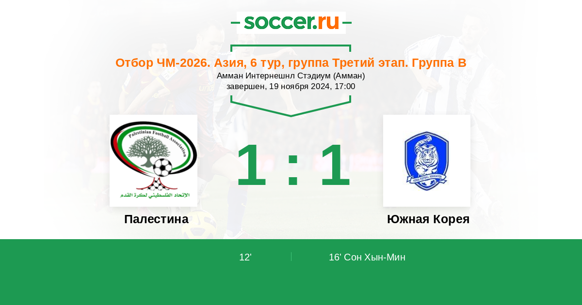 16' (1:1) Сон Хын-Мин (7) (Ли Дже-Сон (10))