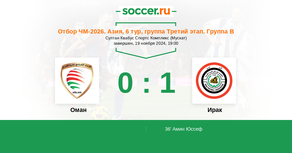 36' (0:1) Амин Юссеф (19) (Ясин Ахмед (9))