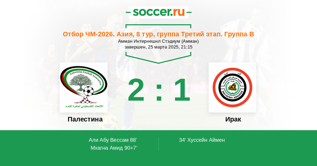 90+7' (2:1) Мхагна Амид (20) (Кайед Адам (18))
