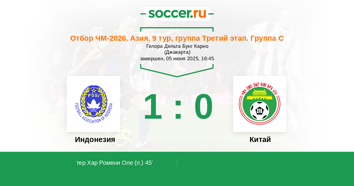 45' (1:0) тер Хар Ромени Оле (10)
