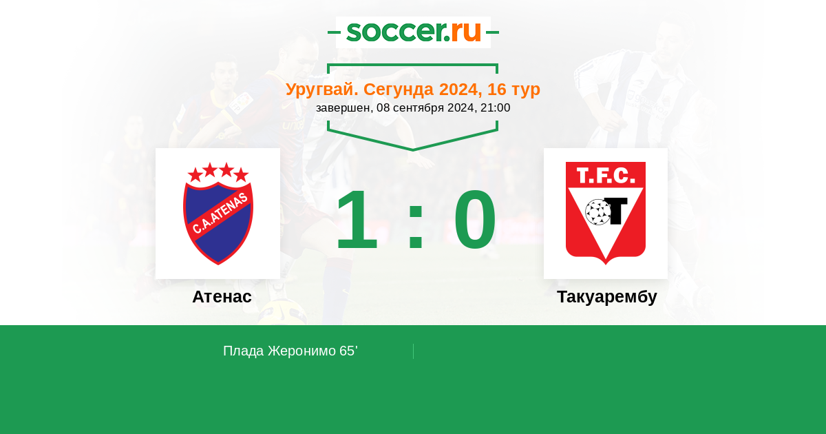 65' (1:0) Плада Жеронимо