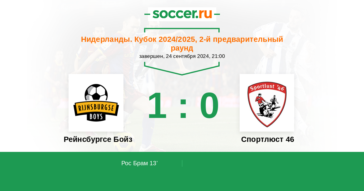 13' (1:0) Рос Брам (6)