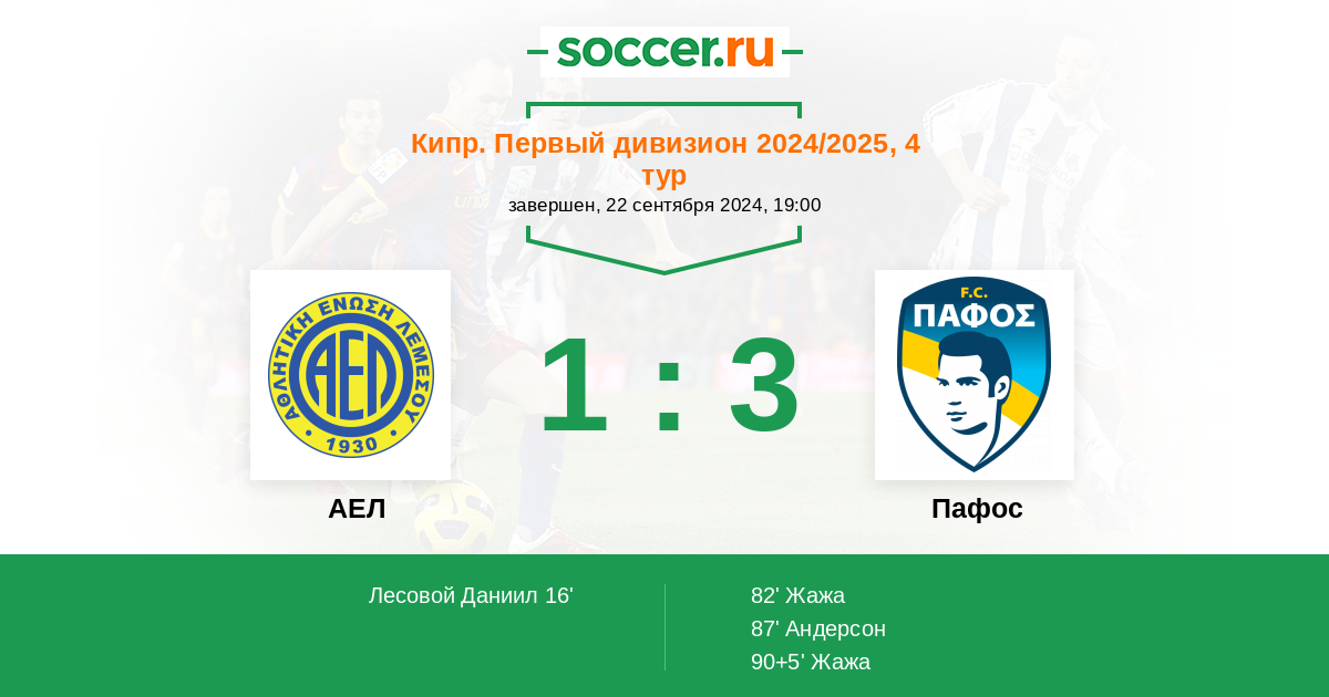Запасные: 15 Аврахам Авив (с 38'), 25 Панайоту Андреас (с 46'), 9 Роберта Найджел (с 62'), 42 Неофуту Андреас, 11 Захариу Панайотис (с 82'), 98 Киряку Панайотис, 4 Костантини Факундо, 6 Стольник Марко, 12 Бамбок Франк-Ив, 71 Жеролему Яннис, 90 Панаги Панагиотис, 73 Темистоклеос Темистоклис