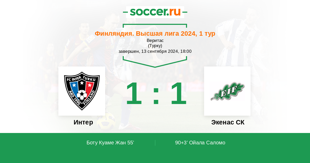 55' (1:0) Боту Куаме Жан (11) (Тамминен Матиас (21))