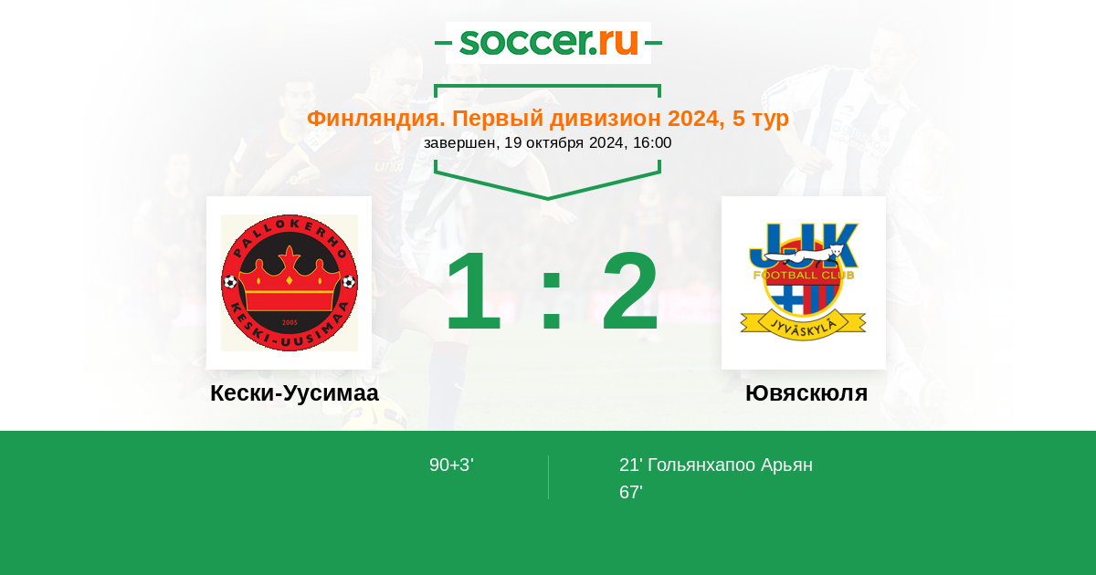 90+3' (1:2) E. Lappalainen