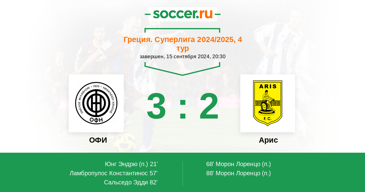 Запасные: 9 Сальседо Эдди (с 73'), 88 Бакич Марко (с 73'), 80 Койтентакис Титос (с 78'), 7 Риера Адриан (с 90+1'), 6 Карахалиос Зисис (с 90+1'), 4 Маринакис Николаос, 46 Теодосулакис Яннис, 32 Сотириу Димитриос, 99 Абанда Мфомо Лерой
