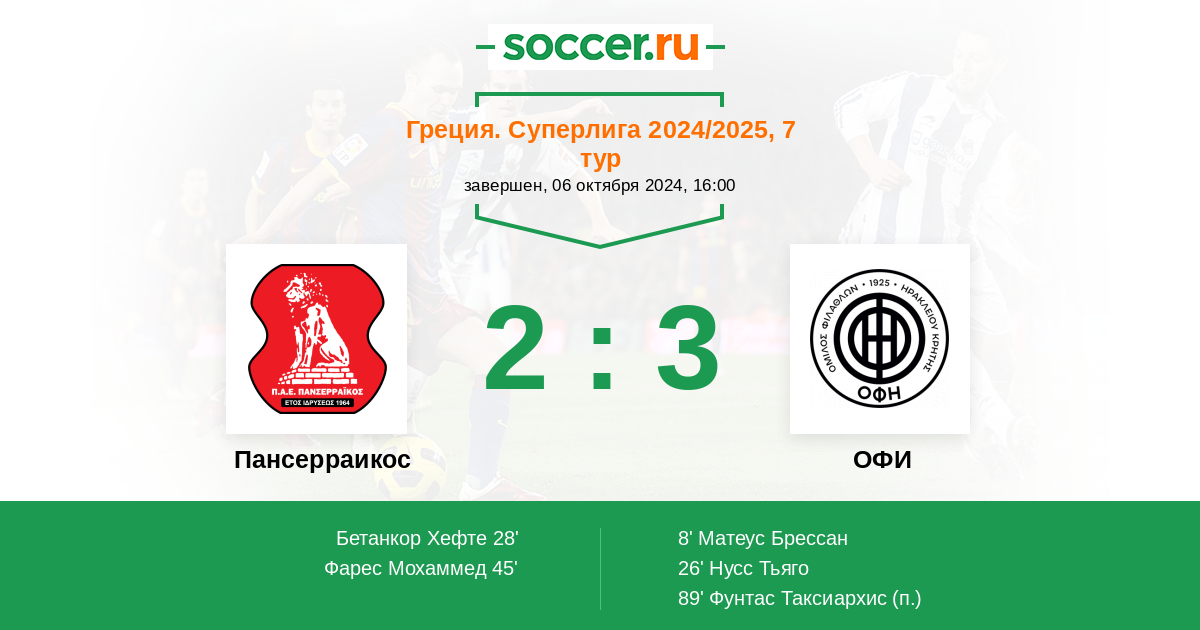28' (1:2) Бетанкор Хефте (10) (Делигианнидис Панагиотис (64))