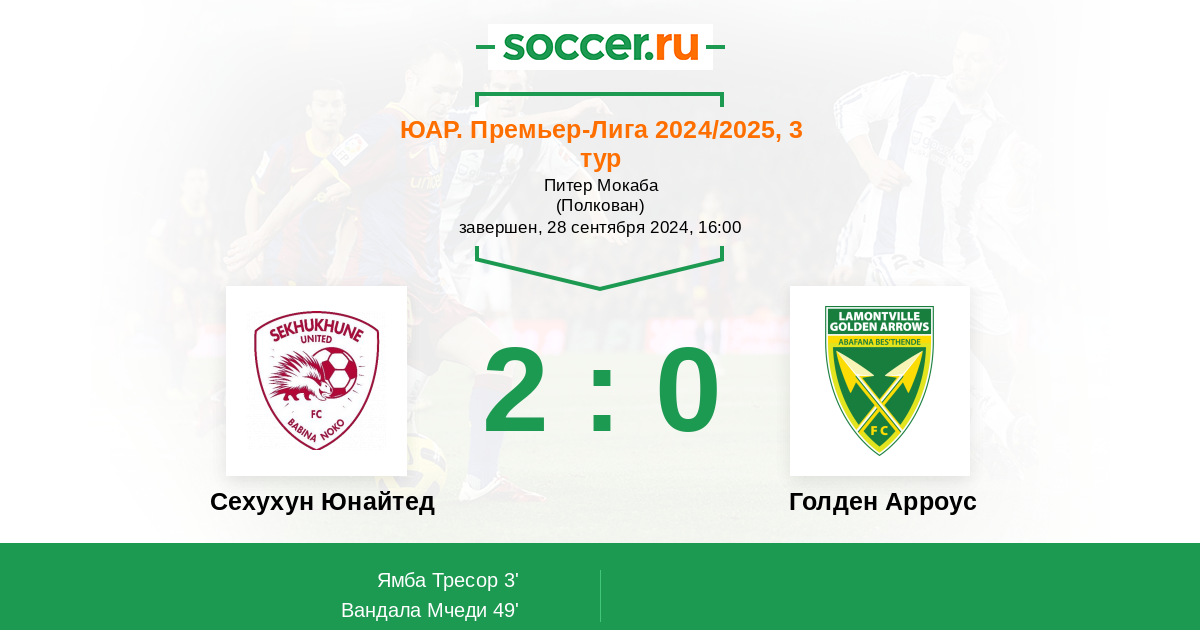 49' (2:0) Вандала Мчеди (36) (Монаре Табанг (18))