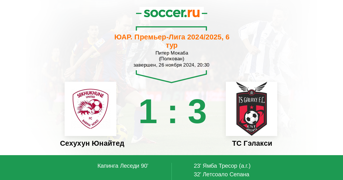 32' (0:2) Летсоало Сепана (17) (Займович Дженан (9))