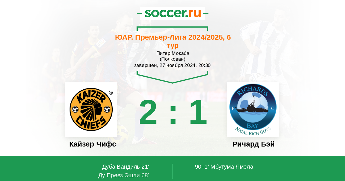 Запасные: 23 Фигуредо Джастик (с 54'), 17 Гумеде Тулани (с 54'), 14 Ситебе Сиетемба (с 54'), 16 Салим Джамал, 2 Фезиле Гкаба, 19 Бутелези Тандо, 7 Мулхамме Тато, 18 Дубе Сиябонга, 27 Бомело Нтлонело