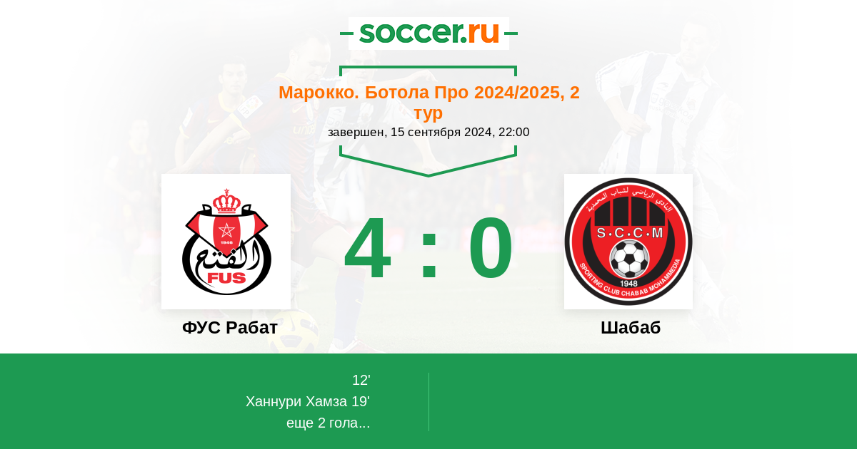 19' (2:0) Ханнури Хамза (19)