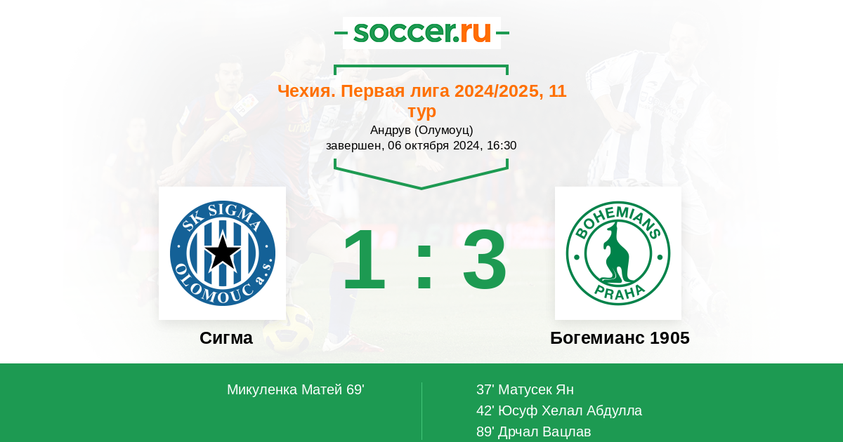 69' (1:2) Микуленка Матей (25) (Спачил Йиржи (8))