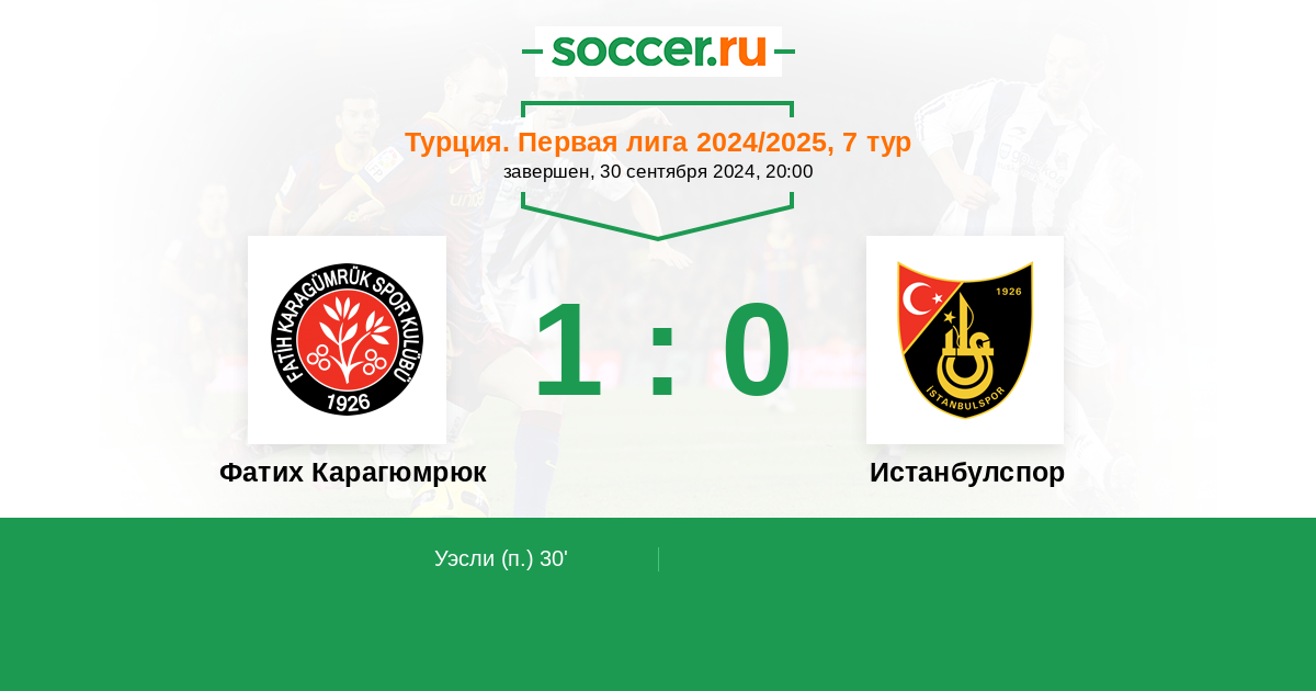 30' (1:0) Уэсли (9)