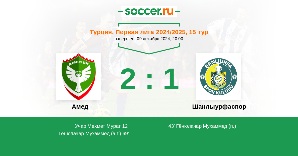 69' (2:1) Автогол Гёнюлачар Мухаммед (72)