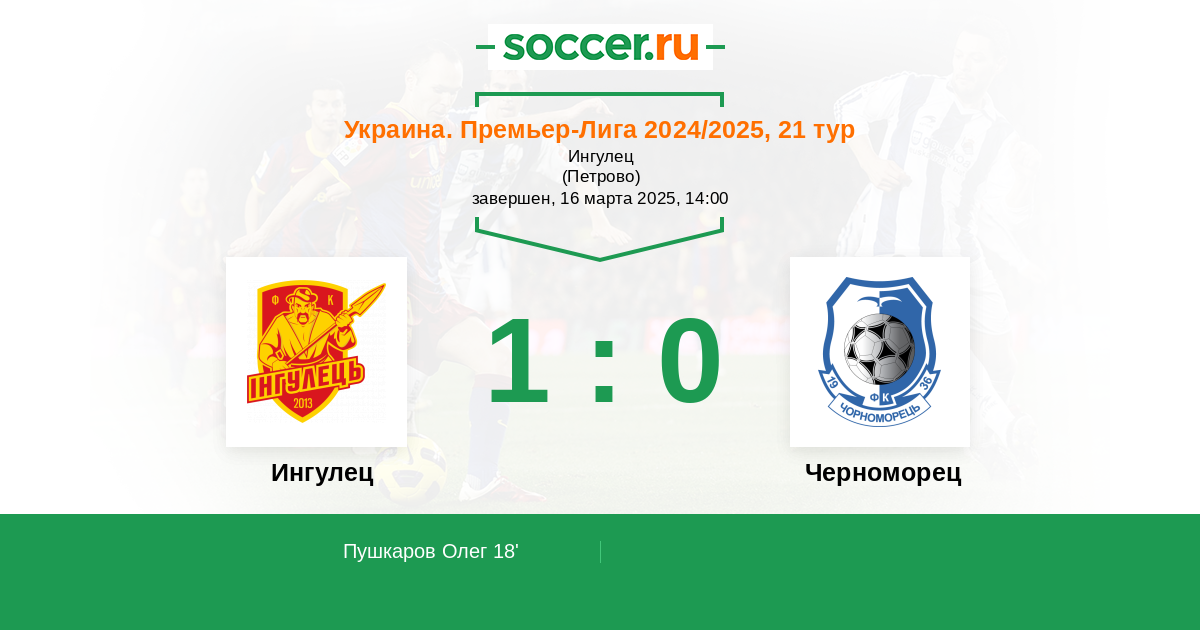 18' (1:0) Пушкаров Олег (9)