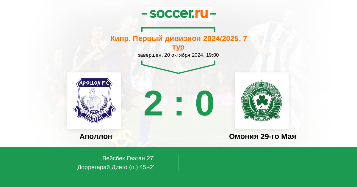 Запасные: 6 Фернандес Альберто (с 67'), 55 Карп Кэтэлин (с 67'), 19 Пикис Иасонас (с 76'), 91 Бела Жереми (с 76'), 21 Понтику Гиоргос (с 83'), 1 Стрецос Георгиос, 5 Андреу Адамос, 10 Фабиньо, 14 Гаврилидис Христос, 16 Паттихис Константинос, 70 Павлу Тимотеос, 44 Шабанаджович Анел
