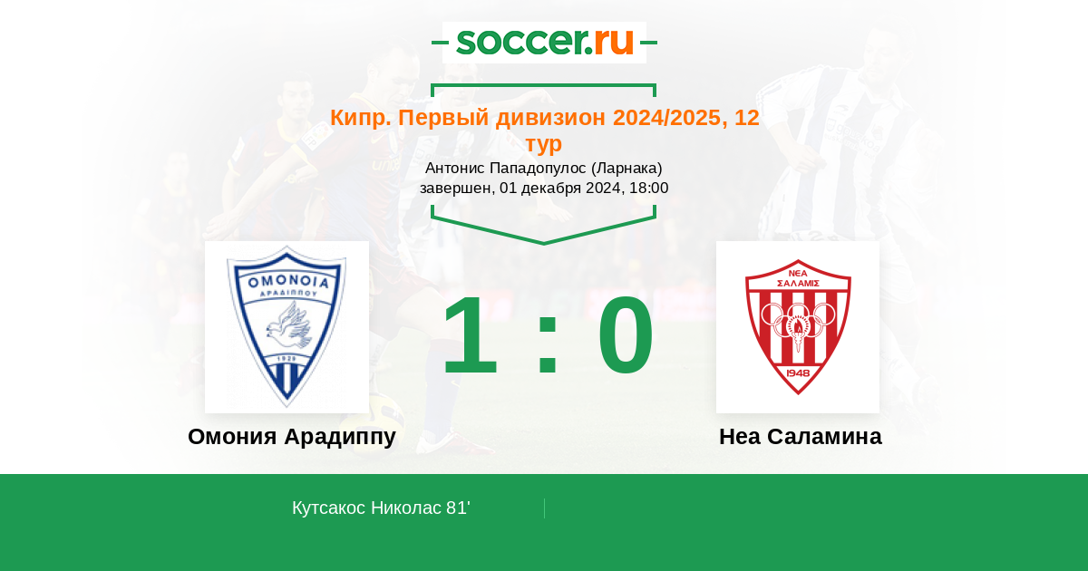 81' (1:0) Кутсакос Николас (89)