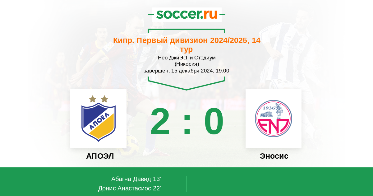 22' (2:0) Донис Анастасиос (11)