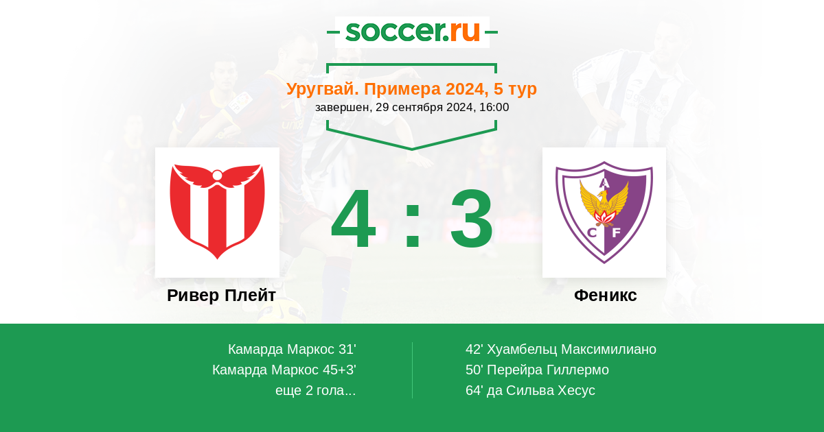 45+3' (2:1) Камарда Маркос (29) (Лавега Хоакин (7))