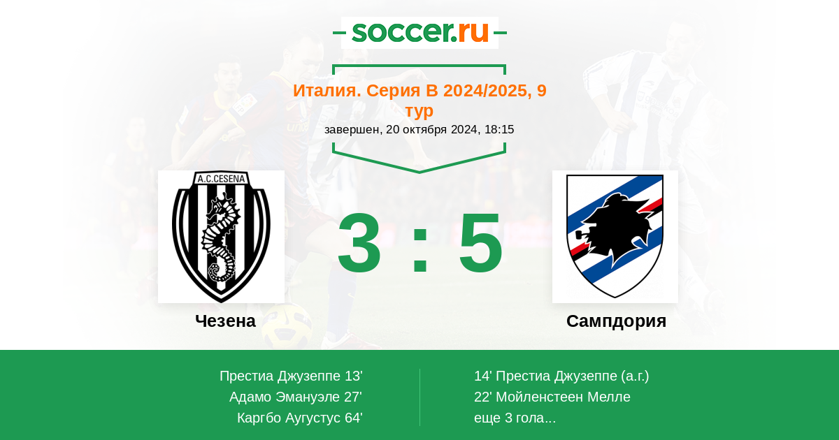 14' (1:1) Автогол Престиа Джузеппе (19)