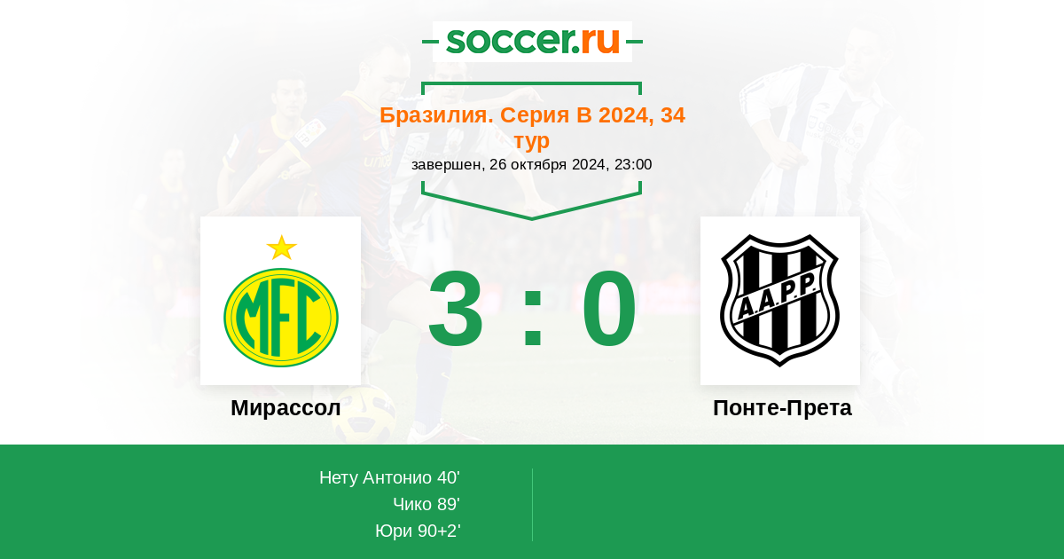 Запасные: 77 Юри (с 35'), 10 Чико (с 58'), 32 Родриго Андраде (с 58'), 99 Гамальо Лео (с 84'), 2 Алекс Силва (с 84'), 3 Газаль Лукас, 14 Брито Исаке, 29 Кристиан Ренато, 90 Томазелла, 16 Бруно Матиас, 98 Маркиньос, 1 Фариас Вандерлей