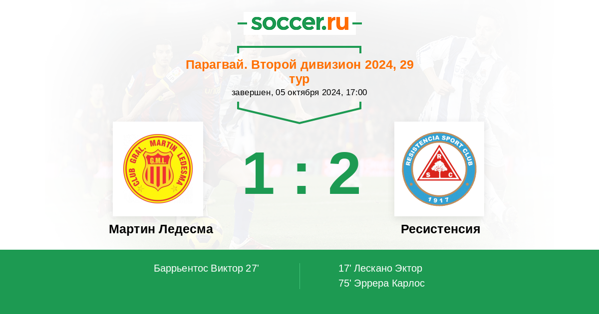17' (0:1) Лескано Эктор (10)