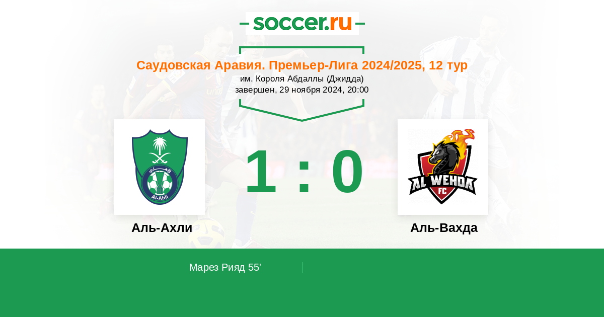 55' (1:0) Марез Рияд (7) (Аль-Бурайкан Фирас (9))
