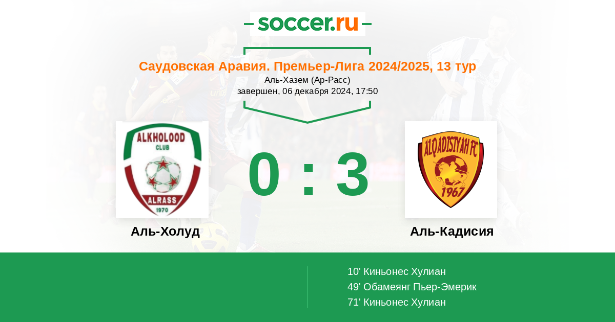 71' (0:3) Киньонес Хулиан (33) (Аль-Аммар Турки (7))