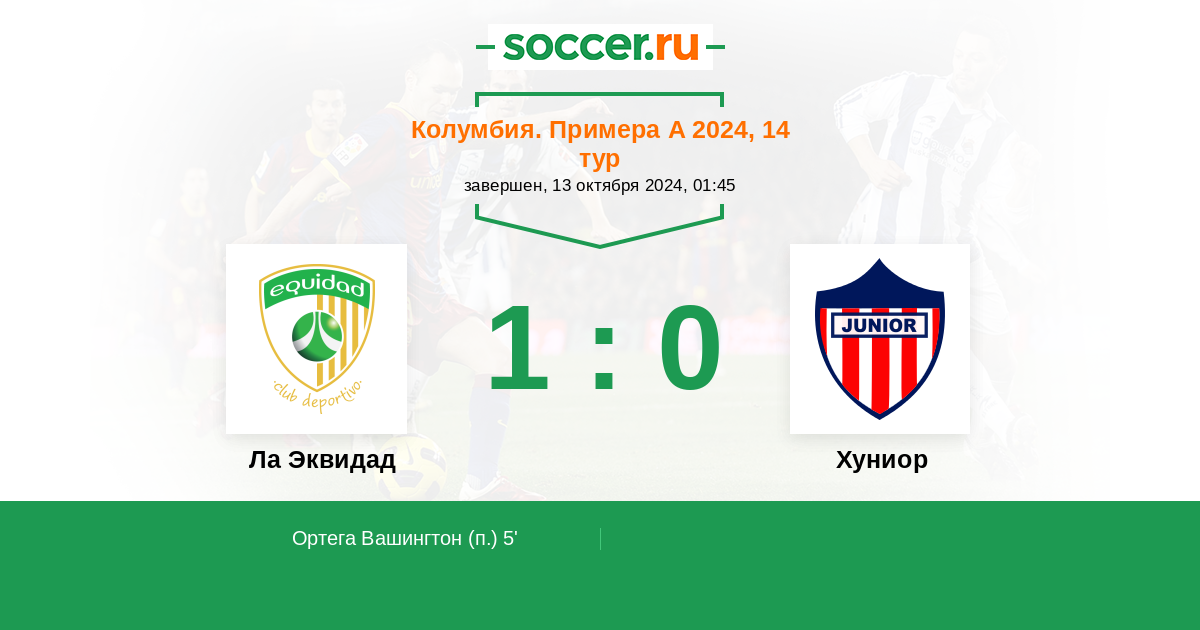 5' (1:0) Ортега Вашингтон (1)