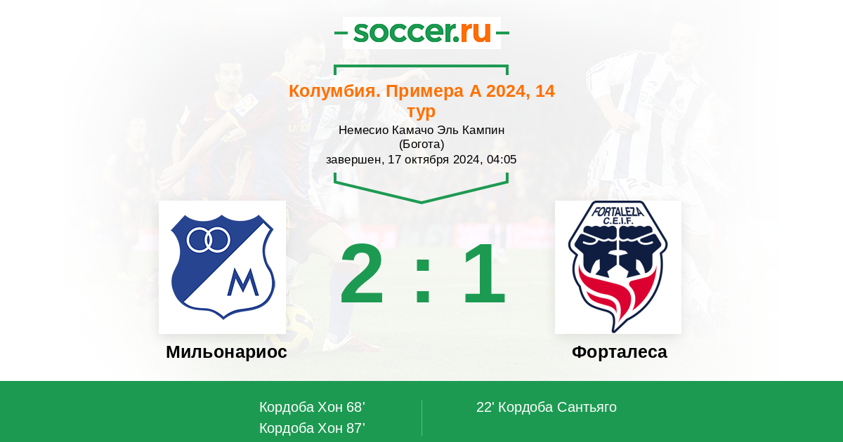 68' (1:1) Кордоба Хон (15) (Руис Даниэль (18))